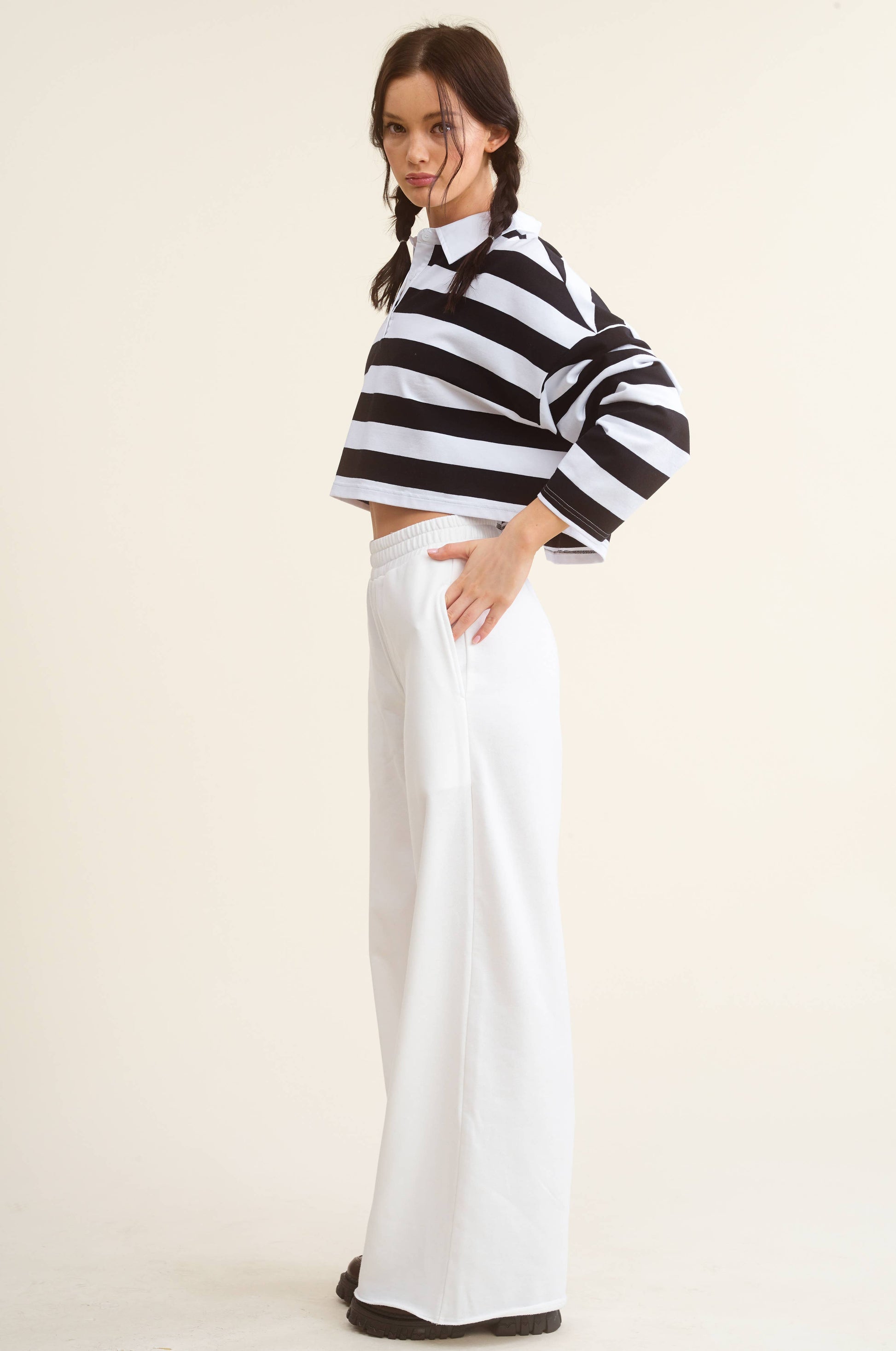 Made from breathable 100% cotton, these high-waisted sweatpants feature a raw edge hem, wide-leg silhouette, and elastic waistband for the perfect relaxed fit. Tailor the hem to your ideal length and pair with anything from cropped tanks to oversized crews for a casually cool look.